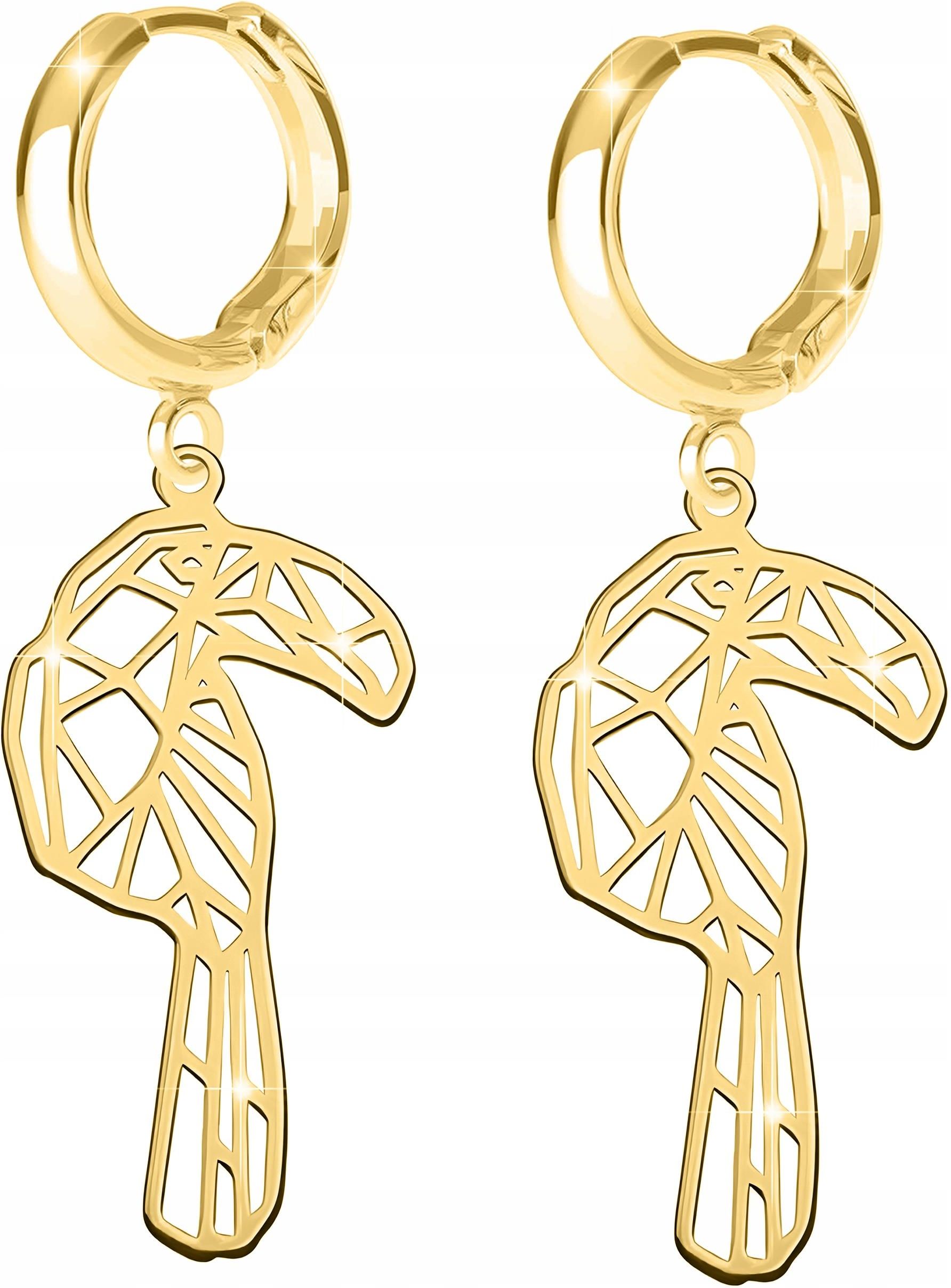 Larezo Złote Kolczyki 925 Rajski Ptak Ażurowe Blaszki Origami Tukan Długie Ptaki Muszyna