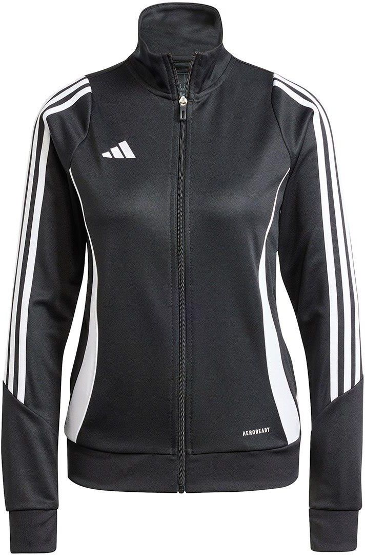Bluza damska adidas Tiro 24 Training czarna IJ9961 Bluza piłkarska adidas przeznaczona dla kobiet sprawdzi się podczas treningów. Wysoka stójka. Zamek na całej długości. Dopasowany krój. Technologia Aeroready pomaga osuszać skórę i zwiększa wygodę. Paski na rękawach. Subtelne logo. Szybkoschnące włókna. Materiał: 100% poliester z recyklingu