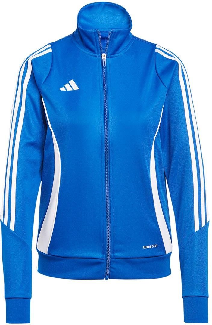 Bluza damska adidas Tiro 24 Training niebieska IR7494 Bluza piłkarska adidas przeznaczona dla kobiet sprawdzi się podczas treningów. Wysoka stójka. Zamek na całej długości. Dopasowany krój. Technologia Aeroready pomaga osuszać skórę i zwiększa wygodę. Paski na rękawach. Subtelne logo. Szybkoschnące włókna. Materiał: 100% poliester z recyklingu