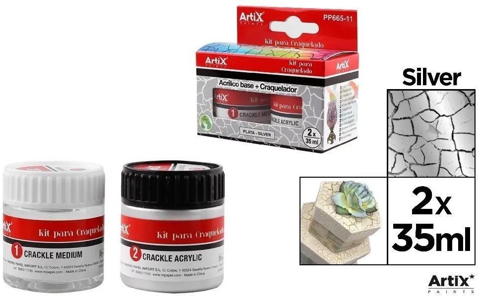 Opis produktu Odkryj niezwykłą farbę akrylową w kolorze srebrnym o pojemności 35 ml, której główną zaletą jest dodatek specjalnego środka do tworzenia efektu spękań. Ten innowacyjny produkt marki ARTIX pozwala artystom na osiągnięcie unikalnych efektów w swoich pracach, nadając im niepowtarzalny charakter. Zastosowanie i cechy Farba akrylowa ARTIX doskonale sprawdzi się w różnorodnych technikach malarskich i projektach artystycznych. Dzięki swojej srebrnej barwie nadaje elegancji każdemu dziełu, a efekt spękań dodaje mu głębi i wyrazu. Idealna do zastosowań zarówno przez profesjonalistów, jak i amatorów, którzy chcą wzbogacić swoje prace o stylowy akcent. Właściwości Ten wyjątkowy produkt jest stworzony z myślą o łatwym i przyjemnym użytkowaniu. Farba ma dobrą trwałość i intensywność koloru, a dodatek do efektu spękań pozwala osiągnąć zaskakujące rezultaty na powierzchniach malarskich. EAN: 8435464134510