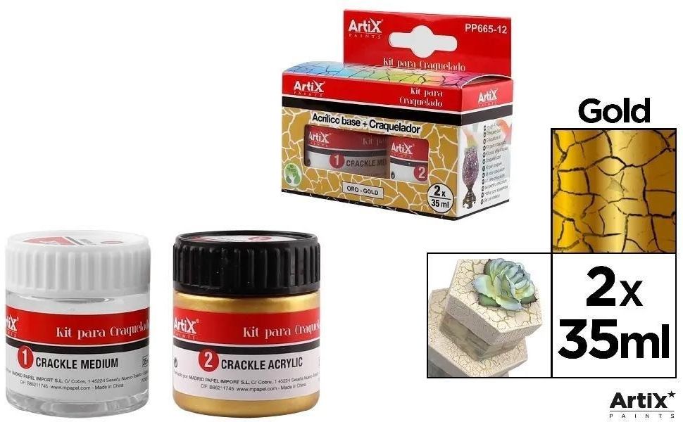 Unikalna Farba Akrylowa Złota Prezentujemy farbę akrylową w kolorze złotym o pojemności 35 ml. Ten produkt marki ARTIX jest przeznaczony dla tych, którzy poszukują sposobu na dodanie blasku swoim projektom artystycznym. Efekt Spękań Tego rodzaju farba jest dodatkowo wzbogacona o specjalny środek, który pozwala na uzyskanie fascynującego efektu spękań. Dzięki temu każda powierzchnia nabiera oryginalnego, starzejącego się wyglądu, co idealnie sprawdzi się w różnego rodzaju projektach zarówno dekoracyjnych, jak i artystycznych. Łatwość Użycia Produkt ten jest niezwykle prosty w użyciu, a jego aplikacja nie sprawia trudności nawet początkującym użytkownikom. Dzięki swojej jakości farba ARTIX gwarantuje trwały efekt i zadowolenie z osiągniętych rezultatów. Odkryj, jak łatwo możesz wzbogacić swoje prace dzięki tej wyjątkowej farbie akrylowej! EAN: 8435464134527