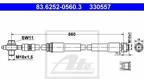 Przewód hamulcowy elastyczny przód l/p (dł. 560mm, m10x1/m10x1,5) pasuje między innymi do (szczegółowe dopasowanie znajdziesz w zakładce "pasuje do pojazdu"): audi a3, tt 1.8 10.98-06.06. Długość [mm]: 560 Artykuł uzupełniający / informacja uzupełniająca 2: ze śrubą ampułową Wymiar gwintu: M10x1,5 Gwint wewnętrzny [mm]: M10x1 Rozmiar klucza 1 [mm]: 11 Rozmiar klucza 2 [mm]: 15 Jednostka pakowania: 1 Ilość w jednostce pakowania: 1