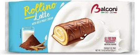Balconi Rollino Latte Ciastka Mini roladki z nadzieniemi śmietankowym i polewą niskokaloryczną 222g Myślenice