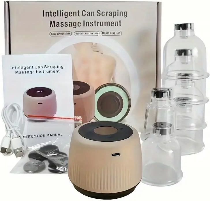 Mamy do zaoferowania rewolucyjny przenośny masażer próżniowy który dzięki wytwarzaniu podciśnienia pobudza krążenie, ujędrnia skórę, niweluje cellulit czy rozluźnia mięśnie. Elektryczna bańka chińska to zaawansowane urządzenie do masażu próżniowego, które łączy tradycyjne metody z nowoczesną technologią. Dzięki różnorodnym funkcjom, urządzenie skutecznie wspomaga leczenie bólu mięśni i stawów, redukcję stresu oraz poprawę krążenia krwi. Cicha praca i wygodne ładowanie przez USB-C sprawiają, że jest idealne do codziennego użytku, oferując kompleksowe wsparcie w terapii i relaksacji. Masażer dzięki wykorzystaniu podciśnienia działa na głębsze warty skóry pobudzając je do regeneracji a specjalne lampy delikatnie ją podgrzewają aby jeszcze lepiej usprawnić krążenie krwi. ZASTOSOWANIE Leczenie bólu mięśni i stawów Relaksacja i redukcja stresu Poprawa krążenia krwi Detoksykacja organizmu Wspomaganie układu odpornościowego Redukcja cellulitu Ułatwienie regeneracji po wysiłku fizycznym Leczenie przeziębień i infekcji dróg oddechowych Urządzenie posiada wyświetlacz odmierzający 20min czasu trwania jednej sesji masażu oraz 4 przyciski sterujące funkcjami masażera m.in siłę ssania. Jak widać urządzenie może być też stosowane jako automatyczne bańki bezogniowe które od wieków stanowią skuteczną terapię medycyny naturalnej. Zestaw zawiera Masażer 4 Bańki 5,5cm 1 Bańka 4,2cm 1 Bańka 3,5cm 6 okrągłych gąbek Przewód ładowania Olejek do masażu