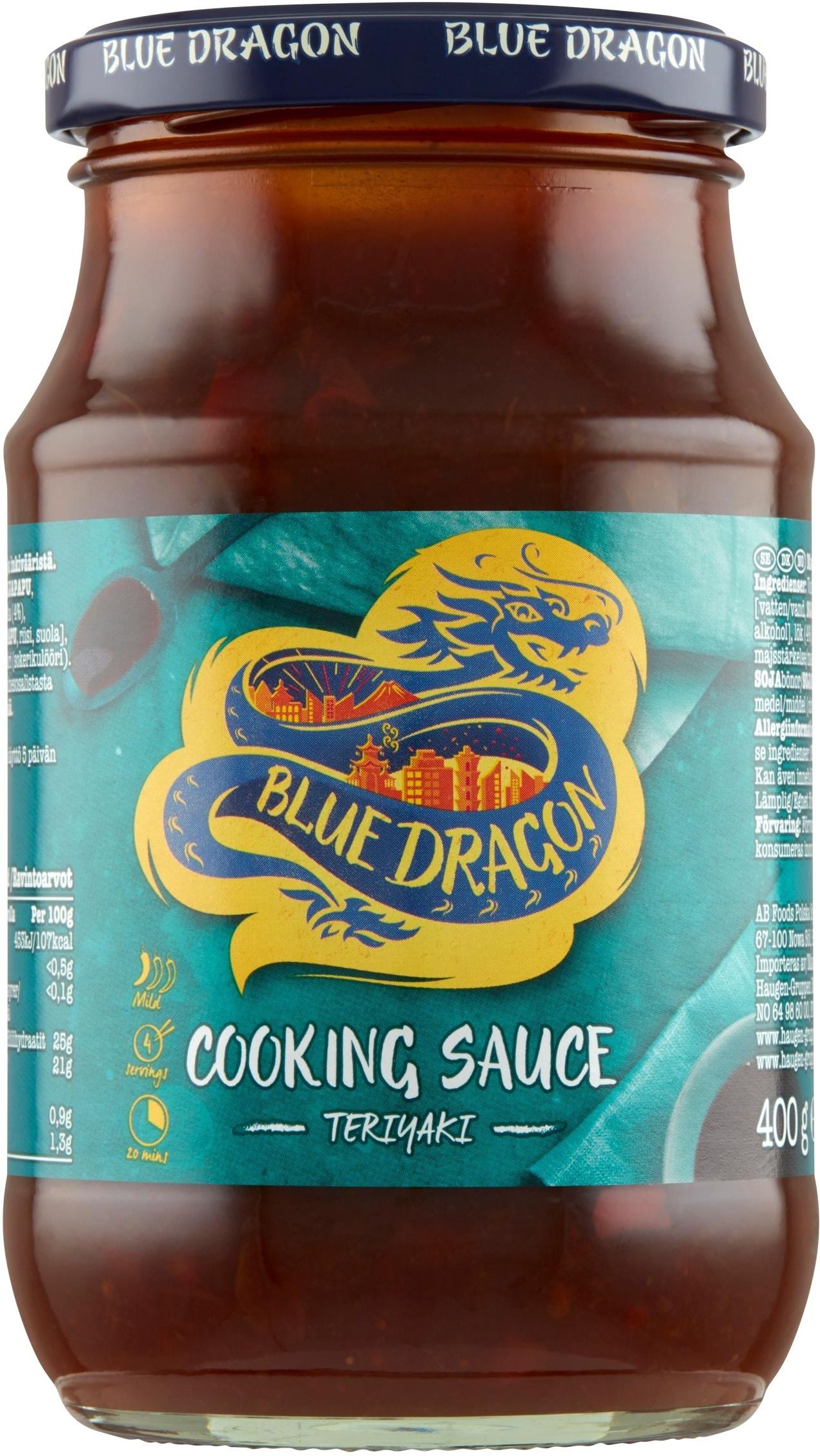 Blue Dragon Sos teriyaki do gotowania z sosem sojowym czerwoną papryką i imbirem 400g Składniki woda, cukier, japoński sos sojowy (8 %) [woda, odtłuszczone nasiona SOI, prażona PSZENICA, sól, alkohol], cebula (4 %), czerwona papryka (4 %), skrobia modyfikowana kukurydziana, pasta sojowa (2 %) ) …