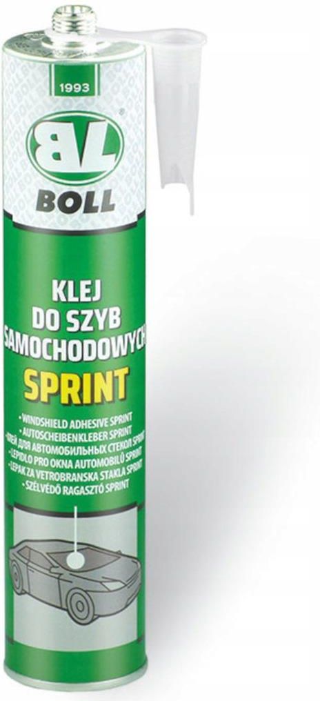 BOLL KLEJ DO MONTAŻU SZYB SAMOCHODOWYCH SPRINT 310 ML Kolor Czarny Pojemność 310 ml Czas schnięcia: 1h w 20°C Temperatura stosowania: +5°C - + 35°C BOLL Klej do Montażu Szyb Samochodowych SPRINT jest jednoskładnikową poliuretanową masą klejącą, która twardnieje bardzo szybko przy udziale wilgoci zawartej w powietrzu tworząc elastomer o bardzo dobrych właściwościach mechanicznych. Klej jest odporny na wodę, działanie czynników atmosferycznych oraz kwasy. Ze względu na dobrą przyczepność, sprężystość i trwałość stosowany jest do wklejania szyb przednich oraz tylnych w pojazdach samochodowych. Powstałe trwałe uszczelnienie wytrzymuje duże wahania temperatury oraz przyjmuje różną rozszerzalność cieplną zespolonych powierzchni szkła i metalu pozwalając obu elementom poruszać się niezależnie. Można stosować go w samochodach posiadających system poduszek powietrznych. SPOSÓB UŻYCIA Obszar krawędzi szyby oczyścić „Zmywaczem silikonu BOLL”. Na krawędź szyby oraz karoserii nanieść aplikatorem „Środek gruntujący BOLL” i zostawić do wyschnięcia na co najmniej 15 minut. Nanieść klej do szyb samochodowych wyciskaczem ręcznym lub pneumatycznym na kołnierz karoserii. Następnie położyć i docisnąć lekko szybę do kołnierza karoserii oraz poprawić docisk i podparcie na klockach odległościowych. Po 1 godzinie samochód nadaje się do ruchu (przy 23°C i wilgotności 50%).