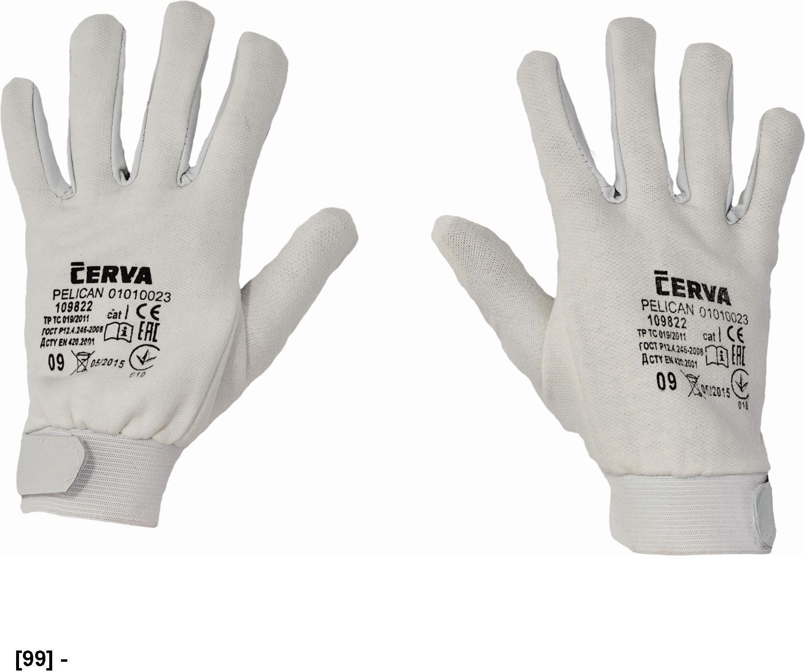 PELICAN Rękawice wzmacniane delikatną skórą kozią licową, grzbiet dłoni wykonany z białej tkaniny bawełnianej, mankiet zapinany na rzep. Marka: CERVA