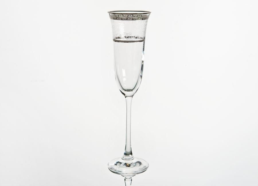 Zestaw 6 Kieliszków do szampana 160ml Laura Elegancki komplet 6 kieliszków do szampana z serii Laura wykończony srebrnym akcentem. Dekoracja wykonana w zakładzie Combi w Opolu metodą trawienia w szkle. Kieliszki wykonane są ze szkła hartowanego, które jest2-3 razy bardziej odporne na uszkodzenia …