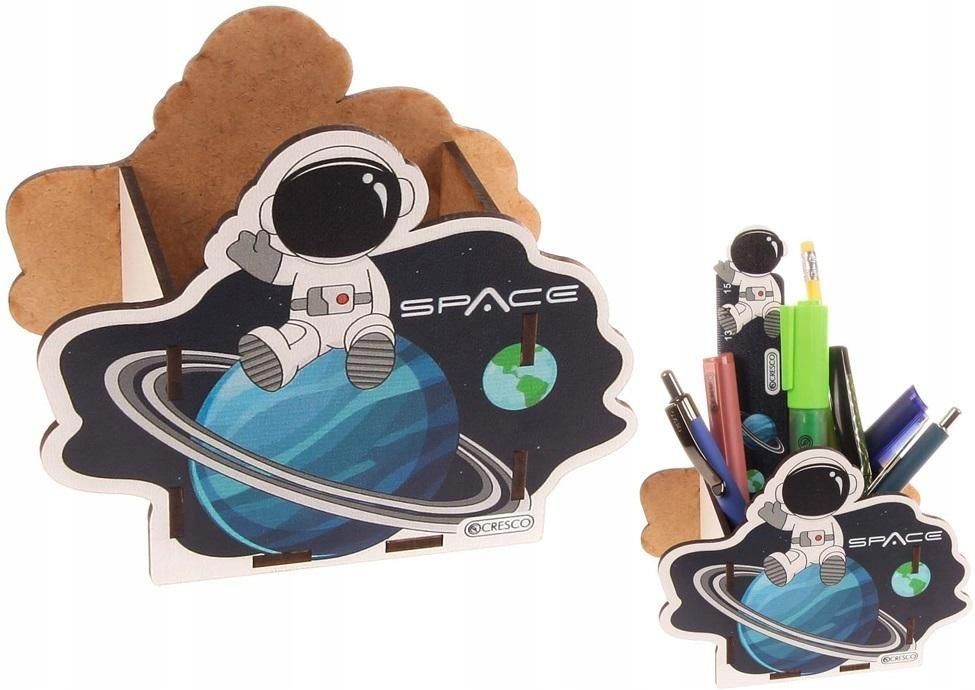 Przybornik organizer na biurko Kosmonauta CRESCO __________________________________________________________________ Drewniany, ekologiczny organizer na biurko o ciekawym wzorze do samodzielnego złożenia. Przybornik pomoże utrzymać porządek na biurku ucznia, a przy okazji atrakcyjna grafika …