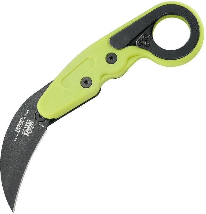 Nóż CRKT Provoke Zap 4041G (NC/4041G) CRKT Nóż CRKT Provoke Zap 4041G Karambitowy nóż Provoke to pierwszy nóż w historii wyposażony w technologię Kinematic, pozostaje starannie schowany podczas transportu, a pojawia się jak tylko pojawiają się kłopoty. Część noża wykonano z Grivory — mocnego i lekkiego termoplastu. Zawsze gotowy do użycia, łatwy w obsłudze i dzięki swej konstrukcji niezwykle wytrzymały. Cechy Łatwe do ostrzenia / ostrze ze stali nierdzewnej o wysokiej zawartości węgla ma dobrą krawędź Zwiększona ochrona / Trwały czarny stonewash Prosty i wytrzymały / formowany uchwyt jest odporny na uderzenia Klips do kieszeni zapewnia bezpieczne przenoszenie Wysoka widoczność / Jasna zieleń jest łatwa do zauważenia w każdych warunkach Specyfikacja Długość ostrza / 62,69 mm Krawędź ostrza / gładka Ostrze Stal / 1.4116 Wykończenie ostrza / Stonewash Grubość ostrza / 5,38 mm Długość całkowita / 182,58 mm Długość po zamknięciu / 125,88 mm Waga / 133,24g Uchwyt / Grivory z mosiężnymi śrubami
