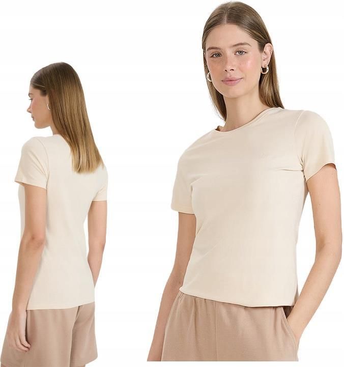 Damska bawełniana koszulka 4FKolor: beżowy 083SDamski T-shirt 4F to uniwersalny element garderoby, który sprawdzi się zarówno w codziennych, casualowych stylizacjach, jak i w sportowym wydaniu. Dzięki dopasowanemu krojowi typu slim koszulka dobrze przylega do ciała, podkreślając sylwetkę, a klasyczna długość sięgająca do linii bioder gwarantuje komfort noszenia przez cały dzień.Koszulka została wykonana z wysokiej jakości dzianiny single jersey o gramaturze 180 gsm, która jest miękka, przyjemna w dotyku i nie prześwituje. Materiał stanowi połączenie naturalnej bawełny (95%) z elastanem (5%), co zapewnia swobodę ruchów, dobrą wentylację oraz dopasowanie do sylwetki.Dzięki okrągłemu dekoltowi i jednolitej kolorystyce T-shirt łatwo dopasować do jeansów, legginsów czy sportowych spodni – idealny wybór na cały rok.Cechy produktu: dopasowany krój slim – subtelnie podkreśla sylwetkę klasyczny okrągły dekolt dzianina single jersey – elastyczna, miękka i przyjemna w dotyku gramatura 180 gsm – materiał nie prześwituje, dobrze się układa 95% bawełny – naturalna przewiewność i komfort 5% elastanu – elastyczność i idealne dopasowanie