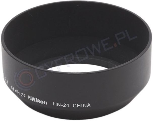 zamiennik osłony przeciwsłonecznej Nikon HN-24. Chroni przed bocznym światłem i odblaskami od wody, śniegu, itp. oraz zapobiega powstawaniu flar na zdjęciach.