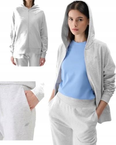 Dres damski firmy 4F model: 4FWMM00TSWSM1763 + 4FWMM00TTRO1138 kolor: jasny szary 27S Stylowy i komfortowy komplet dresowy, składający się z rozpinanej bluzy z kapturem oraz spodni dresowych, sprawdzi się zarówno w codziennych stylizacjach, jak i podczas aktywności sportowej. Połączenie klasycznego designu z nowoczesnymi rozwiązaniami sprawia, że zestaw jest idealnym wyborem na co dzień, trening, a także na relaks w domowym zaciszu. Wykonany z wysokiej jakości dzianiny dresowej french terry, która jest miękka, przewiewna i przyjemna w dotyku, zapewnia pełen komfort noszenia i swobodę ruchów. Uniwersalny fason oraz dopracowane detale podkreślają jego funkcjonalność i nowoczesny wygląd. PARAMETRY TECHNICZNE materiał: 79% bawełna, 21% poliester dzianina dresowa french terry gramatura: 300 gsm krój: regular, standardowy fason sięgający do bioder zintegrowany kaptur z regulacją mankiety ze ściągaczem 2 otwarte kieszenie boczne zapinana na jednokierunkowy zamek
