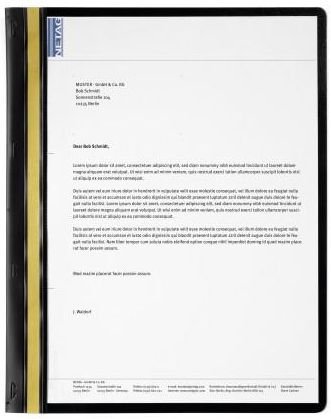 DURABIND, skoroszyt do oprawy dok., A4, 1-30 kartek Skoroszyt do dokumentów, które na stałe powinny być spięte, np. oferty, bilansy, referaty, dokumentacje oraz prace domowe. Okładka przednia jest przezroczysta, tylna zaś z kolorowej foli . Z rozkładaną wkładką (z perforacją 70/80 mm) umożliwiającą wpięcie do segregatora. Pojemność: 1-30 kartek A4. DURABIND®: 1. Po włożeniu arkuszy papieru do skoroszytu należy je spiąć zszywaczem w czterech oznaczonych na folii miejscach 2. Zdjąć pasek ochronny z paska samoprzylepnego. 3. Przednią okładkę tak zagiąć na lewą stronę, aby samoprzylepny pasek pokrył spięty brzeg. Mocno przycisnąć! 4. Przednią okładkę odgiąć po linii zgięcia w prawo. Z tylną okładką należy zrobić tak samo jak na zdjęciu 2 i 3.
