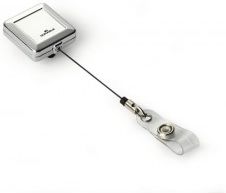 Mechanizm ściągający Jojo Chrome Quadro chromowany o kwadratowym kształcie posiada metalowy klips mocujący na tylnej ściance oraz zatrzaskowy pasek mocujący długość linki: 80 cm pasuje do wszystkich identyfikatorów Durable, które posiadają otwór na klip lub agrafkę 10 sztuk w opakowaniu kolor srebrny