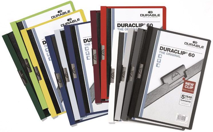 Skoroszyt zaciskowy formatu A4 z kolekcji Duraclip wykonany z trwałego PVC zacisk ze specjalnej stali posiada 5-letnią gwarancję przednia okładka jest transparentna, natomiast tylna jasnoniebieska mieści do 30 kartek zaletą zacisku jest to, że nie ma konieczności dziurkowania dokumentów skoroszyt …