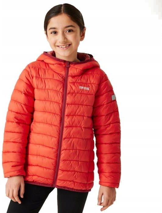 Dziecięca kurtka puchowa firmy REGATTA model: RKN148 2B3 kolor: czerwony Dziecięca kurtka puchowa z wypełnieniem o wysokiej gramaturze – większe zabezpieczenie przed utratą ciepła. Hydrofobowe wykończenie zabezpieczy przed lekkim deszczem oraz śniegiem. Syntetyczna, puchowa izolacja zapewni komfort cieplny podczas chłodniejszych jesiennych dni. Szczegóły produktu: materiał główny: poliamid 20D dwie kieszenie zewnętrzne zapinane na zamek dwie kieszenie otwarte wewnątrz Zapięcie na zamek błyskawiczny zintegrowany kaptur wypełnienie z puchu syntetycznego zapewnia komfort cieplny podczas chłodniejszych dni mankiety zakończone elastyczną gumką odblaskowe wykończenie 360 Etykieta na imię (do rozmiaru 128 cm)
