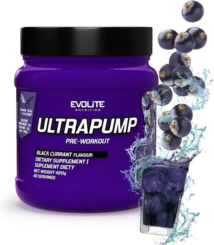 Evolite Ultra Pump 420g Black Currant Smak: Czarna porzeczka EVOLITE NUTRITION Nabicie mięśniowe Wzrost ilości ATP w organizmie- jabłczana kreatyny Wspomaga budowę beztłuszczowej masy mięśniowej Mega pompa dzięki dużej ilości L-cytruliny Mocne pobudzenie - Kofeina bezwodna Skupienie - ekstrakty roślinne Wytrzymałość - Beta-alanina Evolite Ultra Pump 420g Nowa, ulepszona wersja silnego Pre-workout'u! Evolite Nutrition Ultra Pump 420g – Wydajny suplement przedtreningowy, który zwiększa wydolność i pompuje mięśnie. Zawiera składniki wspomagające krążenie, takie jak cytrulina i arginina, które poprawiają przepływ krwi oraz dostarczają więcej składników odżywczych do mięśni. Idealny dla sportowców, którzy chcą maksymalizować wyniki treningowe i osiągać lepsze efekty. Wzbogać swój trening z Evolite Nutrition Ultra Pump! Evolite Ultra Pump to innowacyjny produkt stworzony specjalnie dla osób, które pragną maksymalnie wykorzystać swoje treningi i osiągnąć imponujące rezultaty w siłowni. Jest to zaawansowany suplement przedtreningowy, który dostarcza Twojemu organizmowi kluczowych składników odżywczych, aby wspomóc Cię w intensywnych i wymagających sesjach treningowych. Evolite Ultra Pump zawiera starannie wyselekcjonowane składniki, aby zapewnić Ci optymalne wsparcie podczas treningu. Jego głównym celem jest zwiększenie energii, wytrzymałości i siły, co pozwoli Ci przekroczyć swoje dotychczasowe ograniczenia i osiągnąć nowe szczyty w treningu. Jednym z kluczowych składników Evolite Ultra Pump jest kompleksowy system prekursorów tlenku azotu. Ten zaawansowany blend zapewnia optymalne rozszerzenie naczyń krwionośnych, co przekłada się na zwiększoną dostawę składników odżywczych do Twoich mięśni. Dzięki temu doświadczysz intensywnego przepływu krwi i pompowania mięśni, co pozwoli Ci na większą siłę i wytrzymałość podczas treningu. Dodatkowo, Evolite Ultra Pump zawiera mieszankę energetyzujących składników, takich jak kofeina i tauryna, które pobudzą Twoją psychikę i zapewnią Ci dodatkową motywację do treningu. Te składniki poprawią także koncentrację i skupienie, co pozwoli Ci skutecznie wykonywać ćwiczenia i osiągać lepsze wyniki.Ten zaawansowany suplement przedtreningowy jest przeznaczony dla osób, które pragną maksymalizować swoje rezultaty treningowe. Niezależnie od tego, czy jesteś zawodowym sportowcem, entuzjastą fitnessu czy początkującym, Evolite Ultra Pump pomoże Ci osiągnąć optymalne efekty podczas każdej sesji treningowej. Jakie składniki znajdziesz w Evolite Nutrition Ultra Pump? Monohydrat Kreatyny – zwiększa siłę, wytrzymałość oraz przyspiesza regenerację mięśni, wspierając budowę masy mięśniowej i poprawę wydolności podczas intensywnych treningów. Cytrulina – Zwiększa produkcję tlenku azotu, co wspomaga rozszerzenie naczyń krwionośnych. AAKG – Zwiększa transport składników odżywczych do mięśni, przez co może poprawiać regenerację i przyspieszać budowę masy mięśniowej. Beta-Alanina – Zwiększa poziom karnozyny w mięśniach, co pomaga opóźnić zmęczenie. Tauryna – Wspiera nawodnienie komórek mięśniowych oraz poprawia ich regenerację. Tyrozyna – wspiera produkcję neuroprzekaźników, takich jak dopamina i noradrenalina, co może poprawiać koncentrację, redukować stres i zwiększać wytrzymałość podczas intensywnego treningu. L-Teanina – może poprawiać koncentrację oraz redukować stres, co pomaga w utrzymaniu skupienia i stabilnego poziomu energii podczas treningu. Kofeina – Działa stymulująco, podnosząc poziom energii, dodatkowo wykazuje również działanie termogeniczne, co może sprzyjać spalaniu tkanki tłuszczowej Dlaczego warto kupić suplement Evolite Nutrition Ultra Pump 420g? Zwiększona „pompa mięśniowa”: Dzięki składnikom takim jak cytrulina i arginina, suplement wspomaga rozszerzenie naczyń krwionośnych, co zwiększa przepływ krwi do mięśni, potęgując uczucie „pompy mięśniowej”. Poprawa wydolności i wytrzymałości: Beta-alanina pomaga opóźnić zmęczenie, pozwalając na dłuższe i bardziej intensywne treningi. Bez stymulantów: Suplement nie zawiera kofeiny ani innych stymulantów, co czyni go idealnym wyborem dla osób wrażliwych na stymulanty lub trenujących wieczorem. Lepsze nawodnienie mięśni: Gliceryna i tauryna wspierają nawodnienie mięśni, co może poprawić ich wydajność i regenerację podczas treningu. Kompleksowy skład: Zawartość kluczowych składników, takich jak magnez i sól sodowa, wspomaga równowagę elektrolitową, poprawiając funkcjonowanie mięśni i zapobiegając skurczom. Evolite Ultra Pump 420g to świetny wybór dla osób szukających wsparcia przed treningiem, które poprawia przepływ krwi, wytrzymałość i nawodnienie, bez nadmiaru stymulantów. Skład Zawartość składników aktywnych w porcji dziennej - Jedna porcja produktu - 10,5g - 3/4 miarki - 15cc Zawartość w porcji 10,5g Monohydrat kreatyny: 3g Jabłczan cytruliny: 3g Alfa ketoglutaran Argininy (AAKG): 1,95g Beta-Alanina: 800mg Tauryna: 300mg Tyrozyna: 300mg L-teanina: 250mg Kofeina bezwodna: 200mg Kwas L-askorbinowy (witamina C): 200mg (250%*) Niacyna (Witamina B3): 16mg (100%*) RWS - Dzienna referencyjna wartość spożycia <> Nie ustalono dziennej referencyjnej wartości spożycia Zalecana porcja do spożycia w ciągu dnia:Jedną porcję (10,5g - 3/4 miarki - 15cc) rozpuścić w 200-300ml wody, spożyć bezpośrednio po zmieszaniu, 20-30 minut przed treningiem. Spożywać jedną porcję dziennie. Suplement diety nie może być stosowany jako substy tut (zamiennik) zróżnicowanej diety. Nie należy przekraczać zalecanej porcji do spożycia w ciągu dnia. Składniki: Monohydrat kreatyny, Jabłczan cytruliny, Alfa Ketoglutaran (AAKG), Beta alanina, Regulator kwasowości: Kwas cytrynowy; Aromat, Tauryna, L-teanina, Kofeina bezwodna, Kwas L-askor