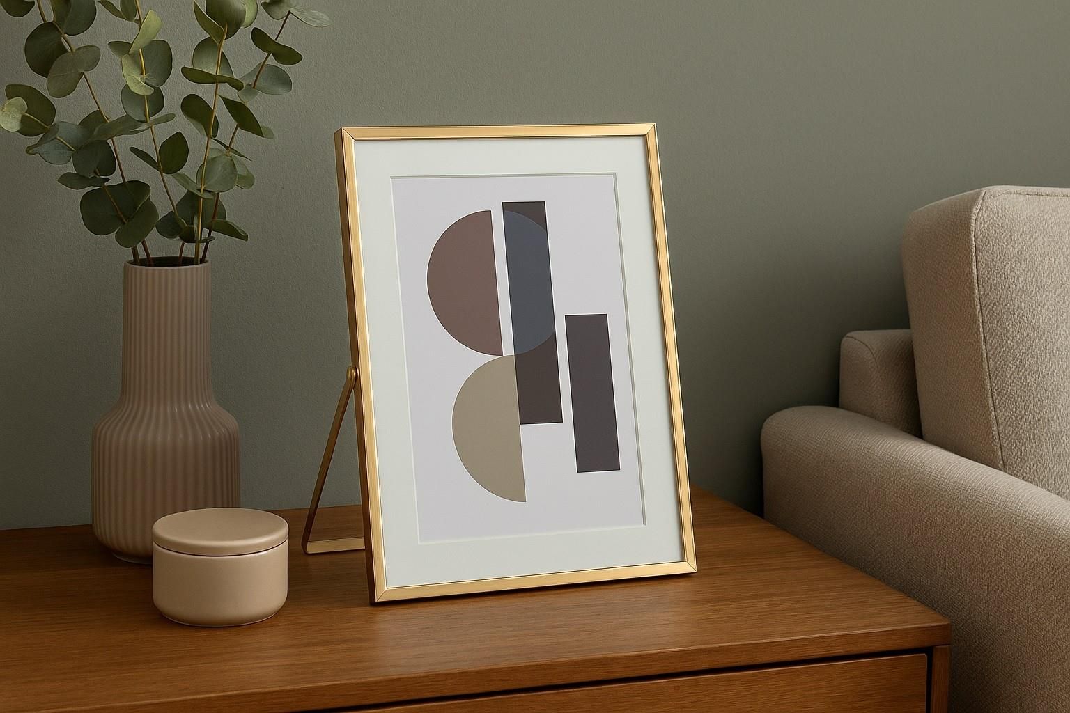 Ramka złota – subtelny minimalizm z nutą luksusu Ramka w kolorze złotym to idealne połączenie minimalizmu i klasy. Wykonana z tworzywa sztucznego, jest lekka, a zarazem solidna. Jej prosta forma i smukła ramka doskonale eksponują zawartość – zdjęcie, grafikę lub plakat. Ramkę postawić w pionie. Zalety: Lekkość i mobilność dzięki tworzywu sztucznemu Stabilna nóżka Współczesny, a zarazem ponadczasowy styl Zastosowanie w stylach aranżacyjnych: Doskonała do wnętrz urządzonych w stylu modern classic, boho chic, mid-century modern oraz nowoczesnym. Dobrze prezentuje się na marmurowych blatach, drewnianych komodach i w galeriach ściennych. Złote ramki na zdjęcia nie tylko pełnią funkcję dekoracyjną, ale także mogą służyć do oprawiania dyplomów, certyfikatów czy podziękowań. Kolor złoty symbolizuje coś cennego i unikatowego, dlatego w takiej ramce świetnie zaprezentują się ważne pamiątki, informacje o nagrodach lub zdjęcia z bliskimi. To również doskonały pomysł na prezent na urodziny, ślub czy Dzień Matki, podarowany bliskiej osobie. Zdjęcie tytułowe ma charakter poglądowy. Prezentowana aranżacja może zawierać elementy dekoracyjne niewchodzące w skład zestawu. Szczegóły dotyczące zawartości znajdują się w opisie produktu.