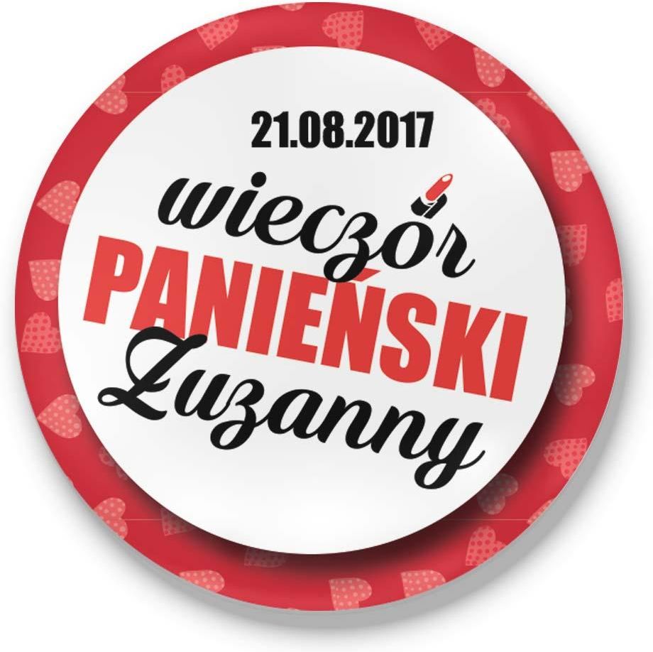 fajnekubki Przypinka okrągła z imieniem i datą na wieczór panieński 33 Myślenice