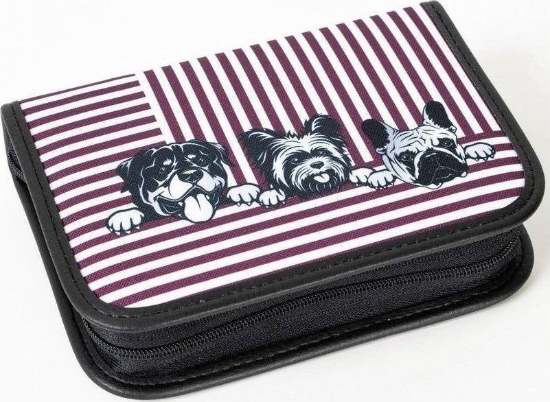 Piórnik tekstylny jednopoziomowy Doggy 1 został zaprojektowany z dwoma klapkami, które służą do przechowywania długopisów, ołówków i innych drobnych akcesoriów szkolnych. Wykonany z materiału, który można łatwo umyć, jest doskonałą alternatywą dla trudnych do utrzymania w czystości skórzanych piórników. Piórnik charakteryzuje się unikalnym wzorem, który powstał dzięki użyciu techniki druku sublimacyjnego. To sprawia, że ten model wygląda wyjątkowo atrakcyjnie i na pewno przyciągnie uwagę innych uczniów. Rozmiar piórnika to 20 x 5 x 14 cm (szerokość x wysokość x głębokość), więc bez problemu zmieści się do każdego plecaka, nawet do tego niewielkiego. Ważne jest, że piórnik sprzedawany jest bez wyposażenia, co daje możliwość indywidualnego dopasowania zawartości do własnych potrzeb i upodobań. EAN: 8595083533498