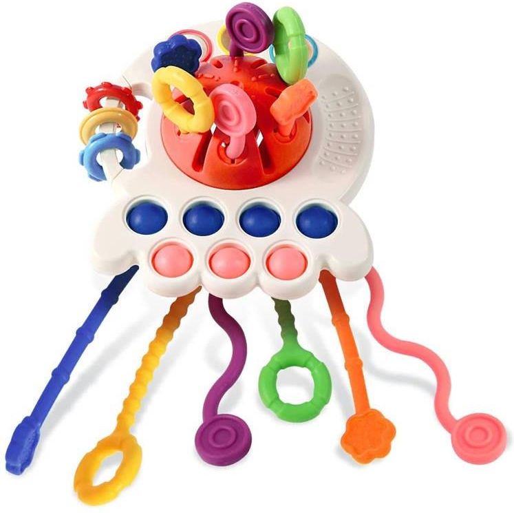 Interaktywna zabawka sensoryczna 4w1 gryzak Pop it ZA4274 Interaktywna wielofunkcyjna zabawka sensoryczna 4w1 Ufo jest przeznaczona dla maluszków od 18 miesiąca życia. Zabawka pozwoli dziecku na odkrywanie różnych faktur i kształtów, wyposażona została w wiele funkcji, które wpłyną pozytywnie na zdolności motoryczne malucha, a kolory i kształty rozbudzą ciekawość dziecka. Obie strony zabawki zawierają antypoślizgową strukturę, która umożliwi wygodne trzymanie przez dzieci. UFO wyróżnia się estetyką wykonania, przyjemnymi kolorami oraz kształtami umożliwiającym wiele ciekawych możliwości zabawy. Zalety zabawki wielofunkcyjna zabawka sensoryczna może służyć jako gryzak, jak również przedmiot do treningu małych rączek, sznurki o różnych strukturach do ciągnięcia z boku na bok, podczas przeciągania można wyczuć wibracje i słyszeć wydobywający się dźwięk naciskanie miękkich klawiszy może sprzyjać rozwojowi narządów zmysłów dziecka ćwicząc elastyczność palców przesuwanie guzika poprzez trzy otwory z jednego otworu do drugiego, dziecko ćwiczy zręczność oraz koordynację ręka-oko jasne przyjemne kolory zachęcą dziecko do zabawy, zabawka pomaga w nauce rozpoznawania kolorów rozwija zdolności motoryczne, zmysłowe, motorykę małą i koordynację ręka-oko, zabawka jest bezpieczna, wszystkie elementy zawierają okrągłe krawędzie zabawkę można przymocować do fotelika, wózka, a nawet gondoli. Zestaw zawiera zabawka sensoryczna Ufo Wymiary zabawki 11 cm x 13 cm x 7 cm Długość sznurka ok. 25 cm Wielofunkcyjna zabawka sensoryczna skutecznie ćwiczy elastyczność dłoni dziecka, poprawia umiejętności praktyczne. Idealnie sprawdzi się podczas podróż sprawi, że dziecko będzie zajęte, a tym samym znacznie spokojniejsze. Największy wybór grzechotek i zabawek interaktywnych dla najmłodszych Milusińskich znajdą Państwo w sklepie Jokomisiada. certyfikat: CE wiek: 18 m + wymiar opakowania: 12,5 cm x 14 cm x 7,5 cm waga: 0,19 kg płeć: dziewczynka, chłopiec Długość towaru w centymetrach: 14 Wysokość towaru w centymetrach: 13 Szerokość towaru w centymetrach: 8 Waga gabarytowa w gramach: 242.67