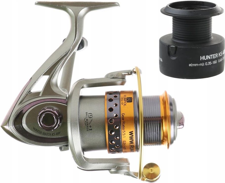 Kołowrotek Hunter Match KS10F Sprzęty niezbędna każdemu wędkarzowi. Idealny do połowów spławikowych Cechy produktu: Wykonany z wysokiej jakości tworzywa i aluminium Wyposażony w przedni hamulec Ergonomiczna korbka z możliwością montażu na lewą i prawą stronę Korbka składana na przycisk Komputerowo wyważony rotor Blokada obrotów wstecznych Instant Anti-Reverse Rotor z systemem Anti-Vibro System S-Stroke zapewnia perfekcyjny układ linii Przełożenie 5.2:1 9 łożysk + 1 łożysko oporowe W zestawie dodatkowa szpula GRATIS Mieści żyłki: 0,20mm/105m 0,25mm/69m 0,30mm/48m