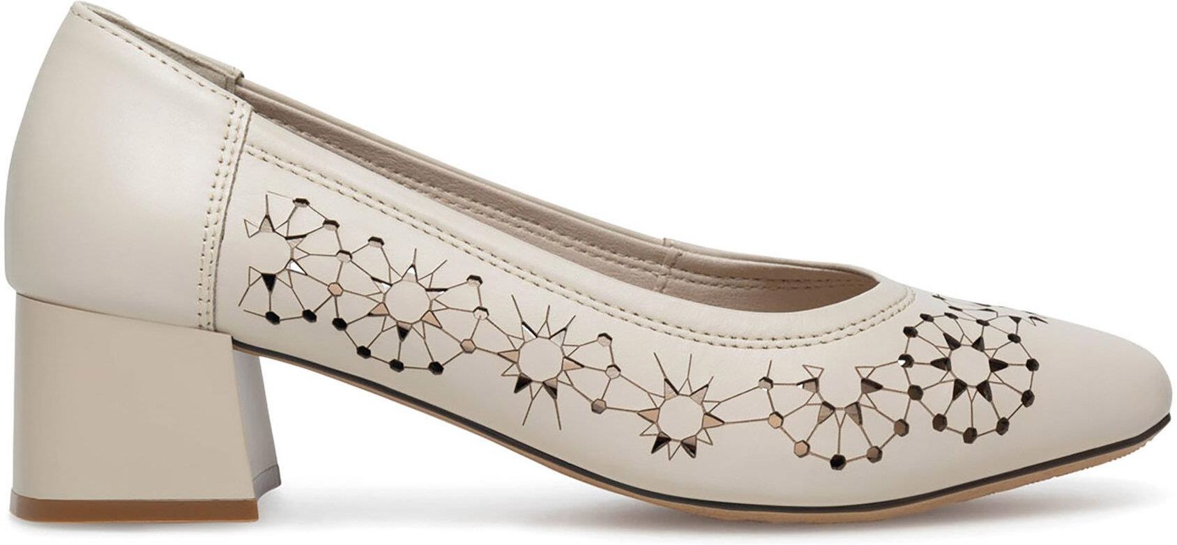 Lasocki RST Agnes 03 Beżowy Model Lasocki RST Agnes 03 Beżowy to eleganckie półbuty damskie, które łączą w sobie szyk z komfortem. Te wyjątkowe czółenka stanowią doskonałe uzupełnienie wielu stylizacji, zarówno casualowych, jak i bardziej formalnych. Beżowy kolor tych butów to uniwersalne rozwiązanie, które z łatwością dopasuje się do różnorodnych outfitów, tworząc idealne tło dla wyrazistszych akcentów. Warto zwrócić uwagę na kluczowe cechy, które decydują o ich atrakcyjności i funkcjonalności. Typ i materiał wykonania Te półbuty to doskonałe połączenie klasyki z nowoczesnością. Wykonane z wysokiej jakości skóry licowej, zapewniają trwałość oraz elegancki wygląd. Skórzana cholewka i wkładka wewnętrzna, również z naturalnej skóry, gwarantują komfort noszenia przez cały dzień. Okrągły nosek dba o swobodę palców, a beżowy kolor sprzyja łatwemu zestawieniu z różnymi elementami garderoby, co czyni je wyjątkowym wyborem na każdą okazję. Konstrukcja i podeszwa Konstrukcja tych półbutów została zaprojektowana z myślą o wygodzie użytkowania. Podeszwa w stylu słupka zapewnia stabilność oraz komfort, nawet podczas długotrwałego noszenia. Tego rodzaju obcas to doskonałe rozwiązanie dla kobiet, które cenią sobie elegancję, nie rezygnując z wygody. Odpowiednie materiały zastosowane w konstrukcji podeszwy sprawiają, że buty są również antypoślizgowe, co zwiększa ich funkcjonalność. Rodzaj zapięcia Ten model to półbuty wsuwane, co stanowi ogromną zaletę dla osób ceniących sobie szybkość oraz wygodę zakupu. Dzięki prostemu zapięciu, można łatwo i szybko założyć je na stopy, co czyni je idealnym wyborem na co dzień. Taki praktyczny element sprawia, że są one doskonałym rozwiązaniem dla zabieganych kobiet, które pragną stylowego, a zarazem funkcjonalnego obuwia. Wkładka wewnętrzna Wkładka wewnętrzna w modelu Lasocki RST Agnes 03 to skórzana wkładka, która znacząco wpływa na komfort noszenia. Jej anatomiczny kształt oraz właściwości amortyzujące sprawiają, że nawet po wielu godzinach użytkowania, stopy nie odczuwają dyskomfortu. Wybór skórzanej wkładki to gwarancja jakości i wygody, co jest niezwykle istotne dla kobiet spędzających długie godziny w obuwiu. Funkcje dodatkowe Lasocki RST Agnes 03 oferuje szereg dodatkowych funkcji, które zwiększają komfort użytkowania. Oddychająca skórzana cholewka pozwala skórze oddychać, co redukuje nadmierne pocenie stóp. Dzięki łatwości czyszczenia i wyściółce antybakteryjnej, te półbuty są nie tylko estetyczne, ale także praktyczne, co sprawia, że są idealnym wyborem na różne okazje. Dodatki i wykończenia Estetyczne aspekty modelu Lasocki RST Agnes 03 również zasługują na uwagę. Prosty, gładki wzór bez zbędnych ozdób sprawia, że półbuty te są niezwykle eleganckie i klasyczne. Minimalistyczne wykończenie doskonale podkreśla ich uniwersalny charakter, co czyni je wszechstronnym dodatkiem do wielu różnych stylizacji. Beżowy kolor w połączeniu z subtelnym obcasem w stylu słupka czyni je idealnym wyborem dla kobiet poszukujących eleganckiego, ale i wygodnego obuwia na co dzień.