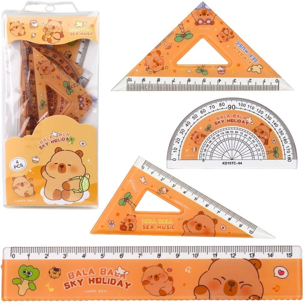 Lean Zestaw Przybory Geometryczne Kapibara Linijka Kątomierz Ekierki 4El. Myślenice