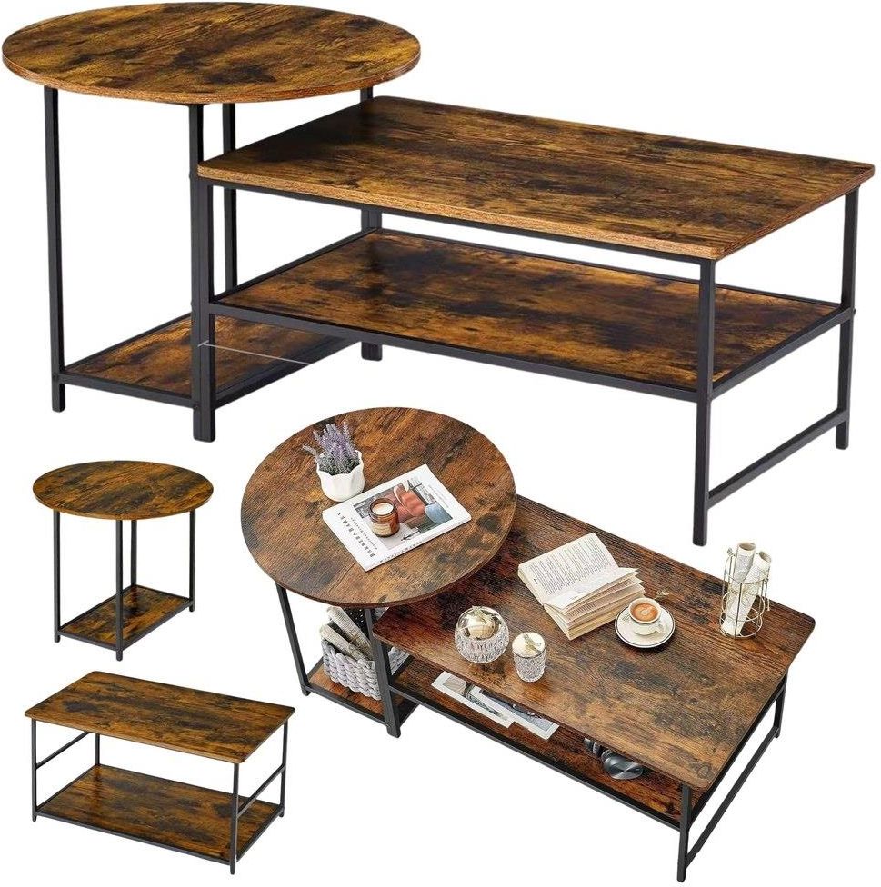 ZESTAW STOLIKÓW KAWOWYCH 2W1 - INDUSTRIALNY DESIGN Z FUNKCJĄ PRZESUWU Nowoczesny zestaw dwóch stolików kawowych to praktyczne i designerskie rozwiązanie do każdego wnętrza. Komplet składa się z prostokątnego stolika głównego z dwiema półkami oraz okrągłego stolika pomocniczego, który może być …