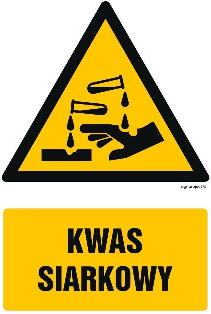 Znak "Kwas siarkowy" - Cel i Znaczenie Opis Znaku Nazwa: Znak ostrzegawczy "Kwas siarkowy" Kategoria: Znaki ostrzegawcze Kształt i Kolorystyka: Kształt: Trójkątny Kolor tła: Żółty Obramowanie: Czarna krawędź Symbol: Czarne piktogramy przedstawiające probówki z substancją żrącą, która kapie na rękę …