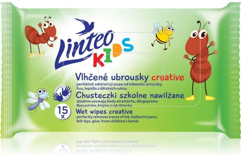 Linteo Kids Creative, 15 szt., Chusteczki nawilżane dla dzieci dla dzieci, Chusteczki oczyszczające Linteo Kids łatwo, szybko i dokładnie oczyszczają skórę dziecka. Właściwości: usuwa zanieczyszczenia do stosowania na ciało i twarz odświeża i odżywia