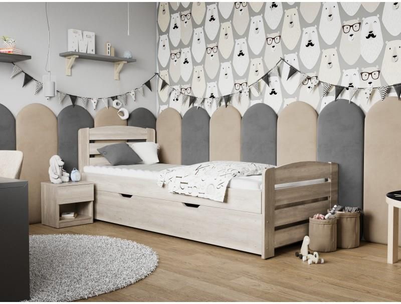 Klasyczne łóżko z płyty w okleinie kolorowej lub drewnopodobnej. Sprawdzi się idealnie w pokojach dziecięcych i młodzieżowych.