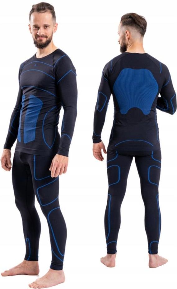 Męska bielizna termoaktywna firmy MORAJ Model: KMT4500-001+KMT3500-001 kolor: czarny/niebieski Bezszwowy komplet męskiej bielizny termoaktywnej. W zestawie bluza i spodnie. Charakteryzuje się oddychalnością, zabezpiecza przed nadmierną potliwością i nie utrzymuje przykrych zapachów. Miękka, elastyczna; zapewnia dobre odprowadzenie wilgoci oraz właściwe utrzymanie ciepła w chłodne dni. Bezszwowa struktura sprawia, że bielizna idealnie dopasowuje się do ciała i nie ugniata. Bielizna o szerokim zastosowaniu, do całorocznego użytku. Polecana szczególnie do treningów, sportów i wypraw zimowych, biegania oraz innych outdorowych aktywności w okresach przejściowych: wczesną wiosną i późną jesienią. Świetna jako pierwsza warstwa; sprawdzi się również jako samodzielna, techniczna odzież sportowa. PARAMETRY TECHNICZNE materiał: 64%poliamid, 29% poliester, 7% elastan elastyczny materiał bezszwowy, szybkoschnący, oddychający, antystatyczny, antybakteryjny lekka, doskonale dopasowująca się do kształtu ciała