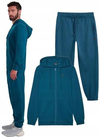 Dres męski firmy 4F model: 4FWMM00TSWSM1768 + 4FWMM00TTROM1140 kolor: Morski 46S Stylowy i komfortowy komplet dresowy, składający się z rozpinanej nieocieplanej bluzy z kapturem oraz ocieplanych spodni dresowych, sprawdzi się zarówno w codziennych stylizacjach, jak i podczas aktywności sportowej. Połączenie klasycznego designu z nowoczesnymi rozwiązaniami sprawia, że zestaw jest idealnym wyborem na co dzień, trening, a także na relaks w domowym zaciszu. Wykonany z wysokiej jakości dzianiny dresowej french terry, która jest miękka, przewiewna i przyjemna w dotyku, zapewnia pełen komfort noszenia i swobodę ruchów. Uniwersalny fason oraz dopracowane detale podkreślają jego funkcjonalność i nowoczesny wygląd. PARAMETRY TECHNICZNE: materiał: 80% bawełna, 20% poliester Bluza bez ocieplenia, spodnie ocieplane dzianina dresowa french terry gramatura: 300 gsm krój: regular, standardowy fason sięgający do bioder zintegrowany kaptur z regulacją mankiety ze ściągaczem 2 otwarte kieszenie boczne zapinana na jednokierunkowy zamek dół ze ściągaczem