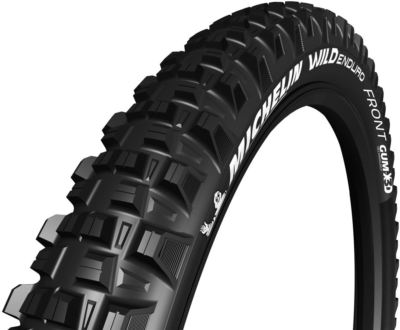 Opona rowerowa WILD ENDURO FRONT 27,5 cala 61-584 27,5x2,40 GUM-X3D Skinwall Tubeless Ready E-Bike Ready Opona rowerowa WILD ENDURO FRONT - Typ opony: Opona składana Ochrona przed przebiciem: Gravity Shield Zastosowanie: MTB Seria: WILD EPI: 60 Competition Line - Zaprojektowana dla maksymalnej wydajności przedniego koła - Dwie różne mieszanki gumy dla szerokiego zakresu zastosowań - Idealna w połączeniu z WILD ENDURO REAR MICHELIN Wild Enduro FRONT GUMXz nową oponą przednią każda trasa staje się przyjemnością większe bezpieczeństwo dzięki specjalnemu wzorowi bieżnika dla opon przednich kształt klocków został zaprojektowany tak, aby zapewnić intensywną wszechstronność w terenie i maksymalną przyczepność podczas hamowania poprawa przyczepności i osiągów dzięki nowej mieszance gumy GUMX 3D lepsza trakcja w terenie i maksymalna wytrzymałość dzięki nowej osnowie Gravity Shield dla większego komfortu na przedniej oponie EBike Ready do 25 km/h Michelin 579710 27.5' opona składana "Wild Enduro front", 27.5x2.40' (61-584), GUM-X TLR, czarna