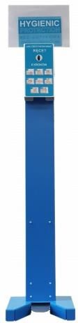 Promocja do wyczerpania zapasów ! Opis: polecana do stosowania: w miejscach użyteczności publicznej, w galeriach handlowych, w hotelach, na lotniskach, stacjach benzynowych, hotelach, sklepach kompletna, wolnostojąca stacja do dezynfekcji rąk powstała w oparciu o rekomendacje World Health Organization i Państwowej Inspekcji Sanitarnej w wersji BASIC urządzenie wyposażone jest w dozownik płynu lub żelu dezynfekującego sterowany pedałem nożnym, bardzo mocny i stabilny stojak, tabliczkę informującą o przeznaczeniu stacji, instrukcję poprawnej dezynfekcji rąk stacja wykonana ze stali malowanej proszkowo na kolor niebieski o grubości 2mm, pedał wykonany ze stali nierdzewnej szczotkowanej o grubości 3mm istnieje możliwość personalizacji i dostosowania koloru Parametry techniczne: pojemnik na płyn: 2000ml wymiary: 350x350x1450mm waga: 15 kg