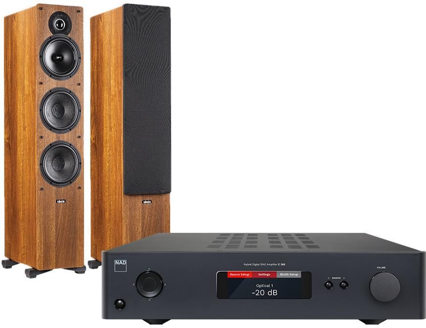 NAD C368 to znakomicie brzmiący, hybrydowy wzmacniacz zintegrowany, który dzięki opcji rozbudowy za pomocą dedykowanych modułów MDC łatwo dostosowuje się do potrzeb użytkownika. W jednym urządzeniu łączą się wszystkie kluczowe elementy dobrego wzmacniacza, takie jak starannie opracowana amplifikacja Class D (wykorzystująca specjalnie modyfikowane stopnie wyjściowe Hypex UcD), zaawansowany przetwornik C/A, bogaty zestaw analogowych i cyfrowych wejść czy też wysokiej klasy przedwzmacniacz gramofonowy. Całość uzupełnia możliwość współpracy z bezprzewodowymi słuchawkami i strumieniowanie dźwięku z urządzeń Bluetooth. Brzmienie. Precyzja. Moc. Wprowadzając do C 368 amplifikację HybridDigital™, inżynierowie NAD zeszli z wydeptanych ścieżek i zamiast zastosować tradycyjny, mało efektywny prądowo stopień wyjściowy klasy AB, opracowali obwody oparte na wzmacniaczach impulsowych klasy D. Dzięki temu, do wnętrza C 368 trafiły specjalnie zaprojektowane układy wykorzystujące zmodyfikowaną wersję sprawdzonego stopnia wyjściowego Hypex UcD. Rozwiązanie to pozwala to na uzyskanie znakomitej precyzji odtwarzanego dźwięku i pokaźnej, pozbawionej zniekształceń i szumów mocy 80 W na kanał, która w szczególnych przypadkach może sięgać aż 120 W wartości szczytowej. Możliwość dodawania funkcji Dzięki opracowanej przez NAD modułowej koncepcji konstrukcyjnej MDC, wzmacniacz C 368 może być łatwo wzbogacany o dodatkowe funkcjonalności, znacznie poszerzające jego możliwości. Dodatkowo, dzięki możliwości stosowania tego typu rozszerzeń, urządzenie staje się otwartym na przyszłość, zabezpieczając użytkownika przed technologicznym starzeniem się wzmacniacza. Obecnie, NAD oferuje dwa moduły rozszerzające dla tego modelu. Pierwszym z nich jest karta MDC BluOS 2 dodająca pełną funkcjonalność odtwarzacza strumieniowego i bezprzewodowego systemu mutliroom, drugą zaś, moduł MDC-HDM2, umożliwiający współpracę C 368 z telewizorem, konsolą gier, czy odtwarzaczem Blu-ray/4K. Strumieniowanie audio i multiroom Dodanie opcjonalnego modułu MDC BluOS 2 gwarantuje dostęp do sieci lokalnej przez Wi-Fi lub przewodowe połączenie Ethernet oraz umożliwia strumieniowe przesyłanie Hi-Res Audio. W ten sposób, wzmacniacz staje się jednocześnie wysokiej klasy źródłem audio, mając dostęp do milionów nagrań z serwisów muzycznych w chmurze, tysięcy internetowych stacji radiowych oraz plików muzycznych z komputera i domowej sieci. Kompatybilność modułu MDC BluOS 2 z urządzeniami ekosystemu Bluesound, pozwala na współpracę C 368 z głośnikami multiroom umieszczonymi w innych pokojach. Muzyka poprzez dwukierunkowy Bluetooth™ Wbudowany w C368 moduł Bluetooth™ jest wyposażony w wysoko wydajny kodek aptX®, dzięki któremu muzyka jest przesyłana z dowolnego urządzenia kompatybilnego z tym interfejsem w jakości CD. Połączenie Bluetooth może być również używane do sparowania wzmacniacza z bezprzewodowymi słuchawkami, takimi jak np. NAD HP70. Analogowa muzyka z winylu C 368 został wyposażony w najlepszy w swojej klasie przedwzmacniacz gramofonowy obsługujący wkładki MM. Odznacza się on precyzyjną korekcją RIAA z szerokim  marginesem przesterowania, wyjątkowo niskim poziomem szumów oraz innowacyjnym dolnozaporowym filtrem sprzężenia zwrotnego. Jego zadaniem jest wyeliminowanie szkodliwego sprzężenia akustycznego pomiędzy wkładką gramofonową a kolumnami głośnikowymi. Wzmacniacz słuchawkowy Do układów audio C 368 wbudowany został w osobny wzmacniacz słuchawkowy o niskiej impedancji wyjściowej i bardzo dużych możliwościach w zakresie napięcia sygnału wyjściowego, dzięki czemu możliwe jest wysterowanie nawet bardzo wymagających słuchawek studyjnych o wysokiej impedancji.   Znakomite możliwości połączeniowe Wzmacniacz C368 to prawdziwe centrum domowej rozrywki. Bogaty zestaw przyłączy zawiera zarówno komplet analogowych wejść liniowych, jak też optyczne i koaksjalne wejścia cyfrowe oraz dedykowane przyłącze dla gramofonu MM. Dodatkowe wyjście Pre-out, może być wykorzystane dla rozbudowy systemu lub podłączenia aktywnego subwoofera, zaś dwa zestawy zacisków pozwalają na współpracę wzmacniacza z dwoma parami kolumn głośnikowych. Całość uzupełniają przyłącza dla wyzwalacza 12V oraz port RS-232, pozwalające na zintegrowanie wzmacniacza w ramach systemów sterowania.   Założona w 1977 r. Indiana Line należy obecnie do grona najważniejszych włoskich marek oferujących kolumny głośnikowe oraz głośniki instalacyjne. Projektanci i inżynierowie opracowujący nowe modele z logo Indiana Line dążą do uzyskania wysokiej jakości wykonania, przy racjonalnym wykorzystaniu poszczególnych podzespołów. Celem takiego podejścia jest osiągnięcie walorów brzmieniowych, które wykraczają znacznie poza parametry, jakie możliwe są do osiągnięcia w tym przedziale cenowym. Dwie ponadczasowe wersje kolorystyczne Klasyczna, a przy tym stylowo zaokrąglona obudowa modelu Indiana Line Tesi 661 doskonale odzwierciedla założenia włoskiej myśli projektowej. Kolumn wykończona jest trwałą, a jednocześnie niezwykle estetyczną okleiną winylową w kolorze jasnego orzecha lub czarnego dębu. Niezależnie od tego, którą z wersji kolorystycznych wybierzesz, model Tesi 661 świetnie odnajdzie się w każdym wnętrzu. Kolumna ta nie tylko dobrze się prezentuje, ale także wyróżnia się pełnym i dojrzałym brzmieniem. Imponująca skala dźwięku Model Tesi 661 marki Indiana Line to majestatyczna, 3-drożna kolumna podłogowa. W jej konstrukcji wykorzystano aż cztery przetworniki elektroakustyczne: 26-milimetrową kopułkę wysokotonową, 160-milimetrowy przetwornik średniotonowy oraz parę przetworników niskotonowych o średnicy 160 mm i dużym liniowym wychyleniu. Masywna obudowa kolumny z dwoma wzmocnieniami wewnętrznymi wspiera się na