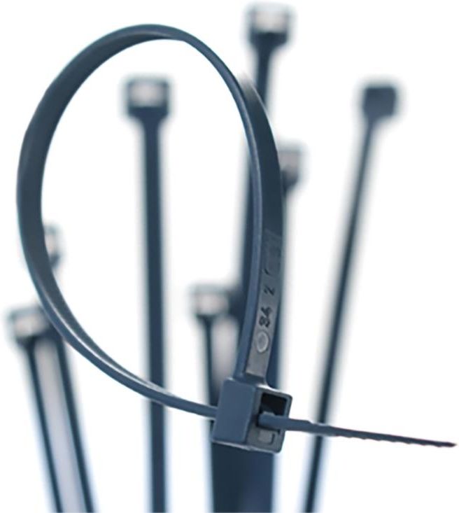 Opaska kablowa CV-770 HW (768x9,0mm) (UV) czarna OPK=100SZT Opaski CV, w kolorze czarnym, wykonane są z poliamidu 6.6 z dodatkiem sadzy (stabilizator klimatyczny). Dzięki temu można je stosować na zewnątrz pomieszczeń. Dostępne w wersjach o szerokościach od 2,5 do 9,0 mm oraz długościach od 100 do 1170 mm. Dane techniczne Długość taśmy: 770 mm Gatunek materiału: PA (Poliamid) Grubość opaski: 2 mm Kolor: Czarny Maksymalna średnica wiązki: 236 mm Materiał: Tworzywo sztuczne Model: Wewnętrzne ząbkowanie Możliwość rozpięcia: nie Obszar nadruku: Brak Odblaskowe (fluorescencyjne): nie Odporność na promienie UV ASTM D6779: tak Przezroczysty: nie Sposób mocowania: Inne Szerokość taśmy: 7,5 mm Zabezpieczenie powierzchni: Stan surowy Zakres temperatur dla montażu: -10 ... 60 °C Zakres temperatury pracy: -40 ... 85 °C Zamknięcie opaski: Z tworzywa sztucznego
