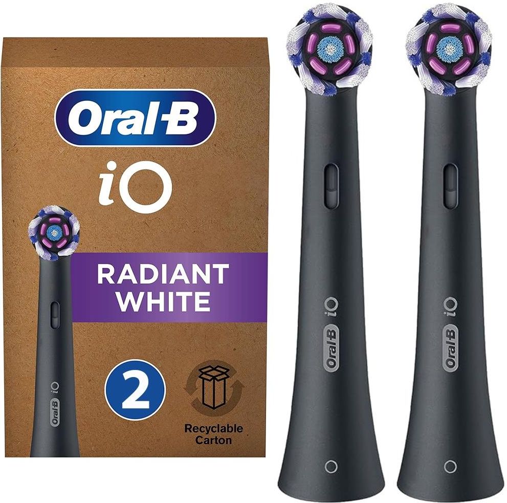 Oral-B Końcówki iO Radiant White Black 2szt. Wymienne końcówki do szczoteczek Oral-B iO Radiant White łączą silne, lecz delikatne mikrowibracje z wyjątkową okrągłą końcówką szczoteczki, zaprojektowaną we współpracy z dentystami, zapewniając profesjonalne uczucie czystości …