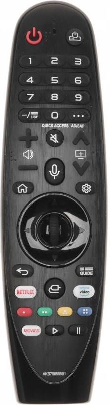 Uniwersalny pilot do telewizorów LG Nie wymaga programowania, pasuje do większości modelu telewizorów LG Cechy produktu Pilot do telewizorów LG Wykonany z wysokiej jakości tworzywa Pilot posiada funkcje głosowe i funkcje scroll (myszki) Wystarczy włożyć baterie i pilot będzie działał z telewizorem Przyciski odporne na ścieranie Nie posiada ostrych krawędzi Zasilany na 2 baterie AA (R6) Długość: 18,5 cm Kompatybilność OLED55B7A OLED55B8 OLED55C8P OLED55E8P OLED65B8 OLED65C8P OLED65E8P OLED65W8P OLED77C8P OLED77W8P SK800 SK8000 SK8070 SK8100 SK8500 SK9000 SK9500 UK6100 UK6200 UK6300 UK6400 UK6470 UK6500 UK6570 UK6750 UK6950 UK7550 UK7700 OLED55B7P OLED55B7V OLED55C7P OLED55C7V OLED65B7A OLED65B7P OLED65B7V OLED65C7P OLED65C7V LJ594V LJ610V LJ614V UJ620V UJ630V UJ6307 UJ6309 UJ634V UJ635V UJ6517 UJ675V UJ701V UJ750V UJ7507 UJ7700 SJ800V SJ8000 SJ810V SJ8500 SJ850A SJ850V SJ8570 SJ857A SJ950V SJ955V SJ957V OLED55B8 OLED55C8P OLED55E8P OLED65B8 OLED65C8P OLED65E8P OLED65W8P OLED77C8P OLED77W8P SK800 SK8000 SK8070 SK8100 SK8500 SK9000 SK9500 UK6100 UK6200 UK6300 UK6400 UK6470 UK6500 UK6570 UK6750 UK6950 UK7550 UK7700 OLED B9 C9 E9 W9 LM6300 UM7100 UM7110 UM7200 UM7400 UM7450 UM7500 UM751 UM7600 UM7610 UM7660 SM8050 SM8200 SM8500 SM8600 SM8610 SM9000 SM9010 SM9800 43UN70003LA 50UN70003LA 55UN70003LA 65UN70003LA 70UN70706LA 75UN70706LC 75UN70706LD 75UN70703LD UHD: UN7100 UN71003 UN730 / UN739 / UN74 / UN80 / UN81 / UN85 NANO: 793 / 796 / 803 / 806 / 813 / 816 / 863 / 866 / 867 / 903 / 906 / 913 / 916 / 917 / 953 / 956 / 959 / 973 / 976 / 979 / 993 / 996 / 999. OLED: BX3 / BX6 / BX9 / CX3 / CX5 / CX6 / CX8 / CX9 / GX3 / GX6 / GX9 oraz WX9 UWAGA!
