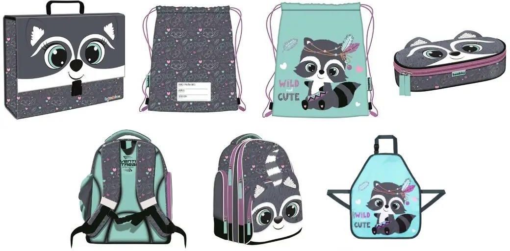 Plecak Premium Plusz Racoon + Piórnik Worek+Fartuszek+Teczka Bambino Szop Myślenice