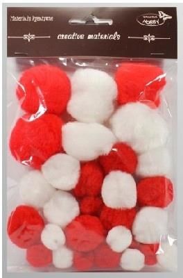 Pompony tonacyjne mix 15-40 mm Biało-czerwone op. Myślenice