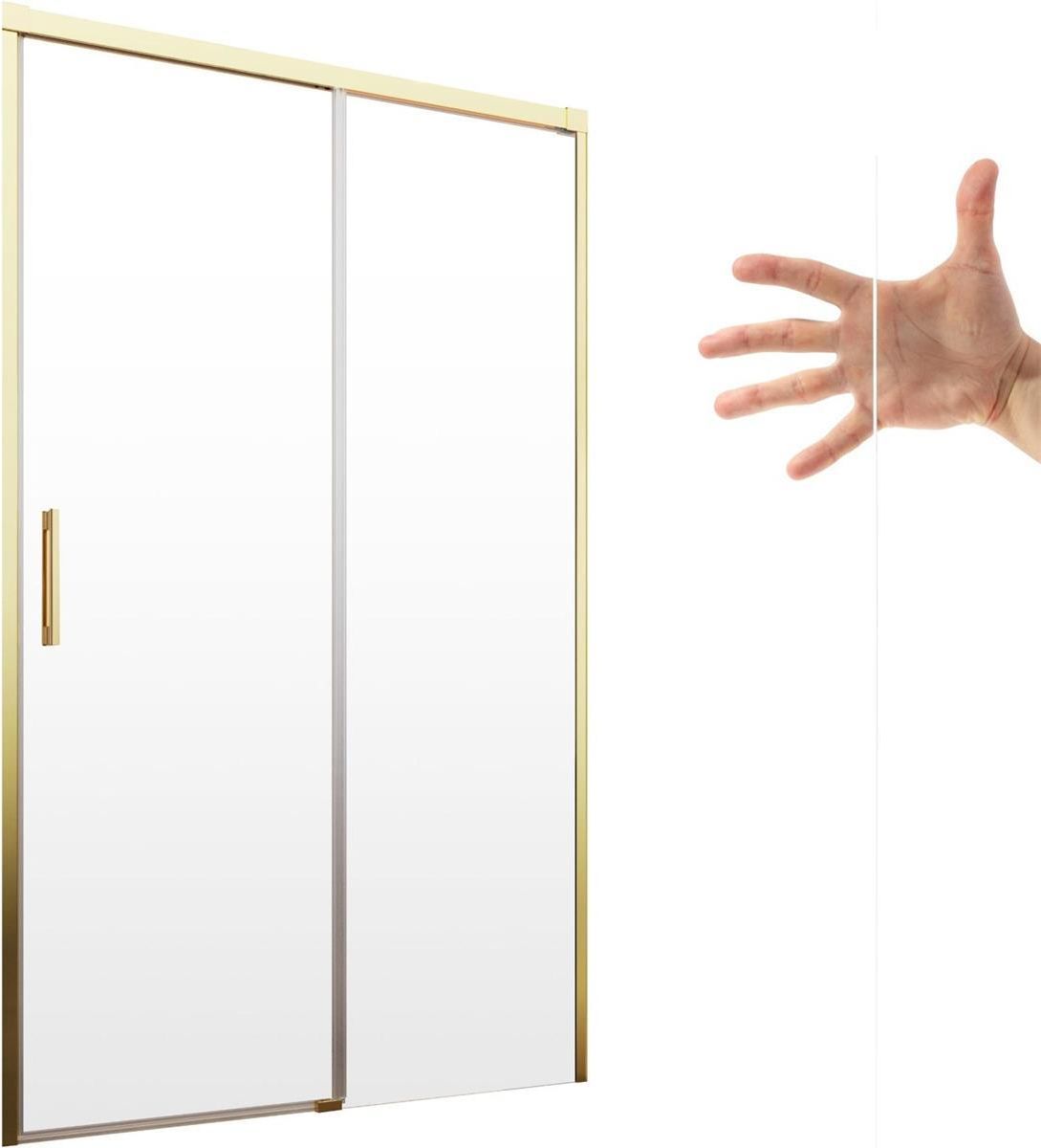 RADAWAY Idea Gold DWJ drzwi prysznicowe 110cm Ergonomiczne, przesuwne drzwi prysznicowe RADAWAY Idea Gold DWJ, dostępne w 7 wariantach szkła Wariant produktu: Strona drzwi: Prawa Kolor szkła: UltraClear Szerokość wnęki na drzwi: 110cm Kolor profili i okuć: Złoty Grubość szkła: 6mm Najważniejsze cechy produktu: drzwi charakteryzują się geometryczną formą i złotymi detalami, które budują wyszukany klimat pomieszczenia bezpieczne szkło hartowane o grubości 6mm, dostępne w siedmiu wariantach funkcjonalne drzwi prysznicowe wyposażone w niewidoczny mechanizm przesuwania i regulacji uszczelka magnetyczna gwarantująca szczelność posiadają możliwość wypięcia dla większego komfortu czyszczenia drzwi łatwe czyszczenie powierzchni dzięki powłoce EasyClean, hamującej powstawanie osadów i zacieków do wyboru prawa lub lewa strona drzwi produkt w 100procent polski możliwość montażu produktu bez listwy progowej stylowa dekoracja drzwi w postaci graweru dowolnie wybranego motywu (patrz: "Opcje konfiguracji") Najważniejsze cechy kolekcji Idea Gold Kolekcja Idea Gold to seria kabin z drzwiami przesuwnymi charakteryzująca się geometrycznymi formami składającymi się w proporcjonalną całość. Kabiny z tej serii doskonale sprawdzą się w modernistycznych wnętrzach rozświetlając przestrzeń łazienki i nadając im eksluzywnego charakteru. Najważniejsze cechy kolekcji: Niewidoczny system przesuwu - system przesuwu i regulacji drzwi jest ukryty w górnym profilu konstrukcyjnym kabiny, dzięki czemu kabina posiada bardzo minimalistyczną, nie odwracającą uwagi formę. Stabilna konstrukcja - stabilną konstrukcję kabiny gwarantuje solidny stabilizator górny zintegrowany z torem przesuwu drzwi oraz boczne profile instalacyjne. Eleganckie złote detale - stylowe złote detale nadają kabinom Idea Gold ekskluzywnego charakteru. Szczelne listwy magnetyczne - nowoczesne listwy magnetyczne dokładnie domykają drzwi na czas kąpieli oraz gwarantują ich 100 procentową szczelność. Cicha praca - płynny, cichy oraz niezawodny bieg drzwi gwarantują łożyskowane rolki oraz subtelny suwak u dołu kabiny. Możliwość wypięcia skrzydła - istnieje możliwość łatwego wypięcia i odchylenia drzwi w celu dokładnego wyczyszczenia kabiny. Easy Clean - szkło niezwykle łatwe w utrzymaniu w czystości Szkło kabiny pokryte jest unikalną hydrofobową powłoką ochronną EasyClean, której zadaniem jest ograniczanie powstawania na szkle osadów wapiennych i niwelacja procesu tzw. korozji szkła. Technologia EasyClean trwale pokrywa wszystkie, niewidoczne dla ludzkiego oka, nierówności szkła, tworząc idealnie gładką powierzchnię. Dzięki temu woda podczas kąpieli spływa swobodnie, ograniczając do minimum powstawanie zacieków, które są głównym czynnikiem osadzania się kamienia. Powłoka EasyClean pozwala również w szybki i łatwy sposób, bez konieczności użycia środków chemicznych, usunąć powstałe na szkle zabrudzenia. Kabiny RADAWAY z powłoką EasyClean gwarantują utrzymanie walorów estetycznych i higieniczną czystość, przez co codzienna kąpiel staje się jeszcze przyjemniejsza. szkło bez ochrony szkło zabezpieczone ochroną szkło ochrona Bezpieczne szkło hartowane o grubości 6mm Kabina wyposażona została w szkło hartowane o grubości 6mm, które charakteryzuje się zwiększoną wytrzymałością mechaniczną oraz większą odpornością na różnice temperatur od zwykłego szkła. Ponadto szkło hartowane jest bezpieczne w użytkowaniu – przy rozbiciu rozpada się na drobne kawałeczki o nieostrych krawędziach. Dzięki temu, Ty i Twoja rodzina możecie czuć się bezpiecznie korzystając z kabiny Radaway. Oferowana kabina posiada szkło UltraClear, które charakteryzuje się niemal identycznymi walorami użytkowymi jak szkło "Przejrzyste", jednak jest pozbawione typowego dla niego zielonkawego zabarwienia oraz posiada niemal 100 procentową przejrzystość. Właściwości użytkowe szkła UltraClear: Efekt odcięcia przestrzeni - szkło nie posiada efektu odcięcia przestrzeni, dzięki temu kabina po zamontowaniu nie będzie optycznie zmniejszała wielkości pomieszczenia, w którym będzie montowana i świetnie sprawdzi się również w bardzo małych łazienkach. Transparentność - wynosząca niemal sto procent gwarantuje świetną przepuszczalność światła do kabiny oraz wierne odwzorowanie barw elementów znajdujących się wewnątrz kabiny, np. armatury, glazury lub elementów dekoracyjnych. Stopień intymności - kabiny z tym typem szkła nie gwarantują intymności podczas kąpieli przy korzystaniu z łazienki przez wielu domowników jednocześnie. Podczas kąpieli będzie widoczna pełna sylwetka osoby biorącej prysznic. Łatwość czyszczenia - dzięki nałożonej od strony wewnętrznej (kąpielowej) powłoce ochronnej EasyClean szkło jest łatwe w utrzymaniu czystości. * Należy jednak pamiętać, że łatwość czyszczenia tego typu szkła spada wraz ze zużyciem powłoki ochronnej. Trwałość powłoki ochronnej - przy normalnym użytkowaniu powłoka utrzymuje swoje właściwości przez okres około pół roku. ** Niestety, pod wpływem wody i środków myjących jej skuteczność (zwłaszcza właściwości hydrofobowych) stopniowo obniża się, dlatego raz na 6 miesięcy zaleca się stosowanie środka EasyClean Glass Protector, który odświeża powłokę EasyClean. Widoczność osadów wapiennych - przy braku regularnego czyszczenia i nie odświeżaniu powłoki ochronnej EasyClean widoczność osadów wapiennych na szkle UltraClear jest bardzo duża. Dlatego, aby w pełni cieszyć się walorami tego typu szkła należy je regularnie czyścić i odświeżać powłokę ochronną. Tabela porównawcza właściwości użytkowych dostępnych wariantów szkła Efekt odcięcia przestrzeni Transparentność (przejrzystość) Stopień intymności Łatwość czyszczenia * Trwałość powłoki ochronnej ** Widocz
