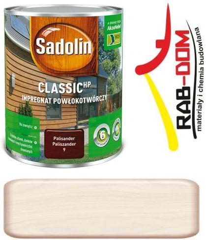 SADOLIN CLASSIC HYBRYDOWY Pojemność: 4,5l BIAŁY KREMOWY Sadolin Classic HP impregnat powłokotwórczy to nowoczesny, głęboko penetrujący impregnat, przeznaczony do stosowania na zewnątrz, do ochronno-dekoracyjnego malowania drewna niemającego bezpośredniego kontaktu z glebą lub wodą powierzchniową. głęboko penetrujący doskonałe zabezpieczenie drewna przed czynnikami atmosferycznymi ochrona przed grzybami powodującymi siniznę drewna wysoka zawartość żywic trwałość zabezpieczenia do 7 lat * Właściwości: Temperatura stosowania: +10°C do +30°C Czas schnięcia: Ostrożne użytkowanie po 3 godzinach, kolejna warstwa po 14-24 godzinach Wydajność do:14 m²/l Rodzaj wykończenia: Mat Sposób nanoszenia :Pędzel Rekomendowana liczba warstw: 2-3 Typ produktu: Syntetyczny Sadolin Impregnat Classic Hybrydowy jest nowoczesnym, głęboko penetrującym impregnatem, przeznaczonym do stosowania na zewnątrz, do ochronno-dekoracyjnego malowania drewna niemającego bezpośredniego kontaktu z glebą lub wodą powierzchniową. Tworzy na powierzchni drewna odporną na działanie wilgoci powłokę, która wydłuża trwałość zabezpieczenia zapewniając aż do 7 lat ochrony. Zabezpiecza drewno przed czynnikami atmosferycznymi. Zabezpiecza drewno przed grzybami powodującymi siniznę drewna. Zapewnia ochronę drewna przeznaczonego do użytkowania w 2 i 3 klasie zagrożenia korozją biologiczną. Głęboko wnika w strukturę drewna chroniąc je również od wewnątrz. Polecany jest w szczególności do płotów, altanek, pergoli, fasad domków drewnianych, drewnianej architektury ogrodowej oraz innych zewnętrznych powierzchni drewnianych z drewna gładkiego, heblowanego oraz szorstkiego. Nie zalecamy stosowania produktu do powierzchni dachowych (np. gonty), podłogowych oraz powierzchni z drewna egzotycznego. 11 gotowych kolorów + bezbarwny; Uwaga! Sadolin Impregnat Classic Hybrydowy bezbarwny stosuj wyłącznie jako 3 warstwę lub do rozjaśniania wersji barwnych (max 30%) Zastosowanie: Ochrona i dekoracja płotów, altanek, domków drewnianych oraz innych zewnętrznych z drewna gładkiego, heblowanego oraz szorstkiego. Produkt biobójczy - należy używać z zachowaniem szczególnych środków ostrożności. Przed użyciem należy przeczytać etykietę i ulotkę informacyjną. PRZYGOTOWANIE WYROBU Dokładnie wymieszać przed oraz w trakcie malowania. Nie dodawać obcych składników. PRZYGOTOWANIE PODŁOŻA Podłoża do malowania muszą być: suche i wysezonowane – wilgotność drewna nie powinna przekraczać 15%, czyste i odtłuszczone (bez zabrudzeń – kurzu, piasku, plam, nalotów organicznych itp.), zdrowe – w przypadku występowania zniszczeń biologicznych oczyść do surowego drewna lub usuń skażone drewno, następnie wypełnij ubytki i pęknięcia odpowiednią masą szpachlową do drewna, wyrównaj i przeszlifuj, Podłoża poddawane renowacji: Usuń dokładnie stare powłoki farb, lakierów lub lakierobejc do surowego drewna. Powierzchnie wcześniej malowane impregnatami należy przeszlifować papierem ściernym w celu usunięcia luźnych powłok i wyrównania koloru. Uwaga! Przy wymalowaniach renowacyjnych wykonaj na małej powierzchni wymalowanie próbne. Jeżeli po wyschnięciu powstanie niepożądany efekt, stare powłoki należy całkowicie usunąć i na nowo przygotować podłoże do malowania. Zaleca się również wypróbowanie preparatu na niewielkiej powierzchni w celu dobrania odpowiedniego koloru – kolor końcowy będzie zależał od barwy początkowej i stanu drewna oraz ilości naniesionych warstw. Podłoża mocno zażywiczone zaleca się przetrzeć szmatką zwilżoną benzyną ekstrakcyjną, poczekać do wyschnięcia. Podłoża i powierzchnie narażone na długotrwałe zaleganie wody i śniegu powinny być w taki sposób zaprojektowane, aby woda była odprowadzana na zewnątrz i nie mogła się nigdzie gromadzić. Zaleca się aby poziome płaszczyzny miały kąt spływu (pochylenie) minimum 15˚. Aby uzyskać właściwą grubość powłoki ochronnej na kantach zaleca się zaokrąglenie ostrych krawędzi drewna (promień zaokrąglenia min. 2mm). Wszelkie połączenia elementów drewnianych z innymi elementami powinny być tak zabezpieczone odpowiednimi uszczelniaczami, aby nie było możliwości ingerencji oraz wnikania wody. Elementy metalowe umieszczone w drewnie powinny być odpowiednio zabezpieczone przed korozją. Szlifowanie na sucho powoduje powstawanie kurzu i pyłu. Zalecamy stosować odpowiednie środki ochrony dróg oddechowych. MALOWANIE Warunki malowania: temperatura otoczenia powinna być pomiędzy +10°C a +30°C, wilgotność względna powietrza powinna być niższa niż 70%, nie malować w wilgotnych warunkach (np. w czasie lub kiedy istnieje prawdopodobieństwo deszczu, mgły, śniegu), w upalne popołudnia oraz przy silnym wietrze. Warunki malowania decydują o czasie schnięcia warstwy wyrobu i właściwościach uzyskanej powłoki. Zalecane metody malowania pędzel: najlepszy efekt uzyskasz stosując pędzle z włosia naturalnego. Parametry malowania nawierzchniowego (ostatecznego) nie rozcieńczaj impregnatu przed użyciem, aplikuj wyłącznie przy pomocy pędzla w ilościach 200-250ml/m2 (łącznie dla wszystkich warstw), w 2-3 warstwach, kolejne warstwy nakładaj w odstępie 14-24 godzin od naniesienia poprzedniej warstwy, rozprowadzaj dokładnie i równomiernie wzdłuż słojów drewna, przed nałożeniem kolejnej warstwy, jeśli podniosą się włókna drewna, powłokę należy przeszlifować drobnoziarnistym papierem ściernym i dokładnie odpylić, w przypadku malowania drewna heblowanego, po 5-10 minutach od nałożenia warstwy preparatu, zaleca się delikatne przetarcie malowanej powierzchni suchym pędzlem celem równomiernego rozprowadzenia nadmiaru impregnatu.