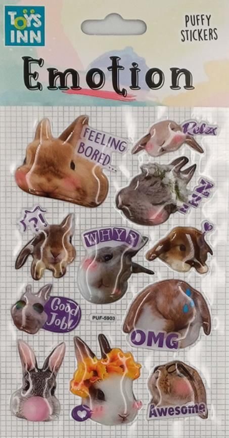STN8691 Toys Inn naklejki emotions - KrólikiNaklejki emotions Króliki to kreatywny i oryginalny sposób na wyrażenie swoich emocji. W zestawie znajduje się około 10 szt. starannie wykonanych naklejek, wyrażających różne nastroje. Można nimi ozdobić telefon, tablet, pamiętnik lub zeszyt. Są trwałe i łatwe w użyciu, dodają unikalnego charakteru różnym przedmiotom.Wiek: +3
