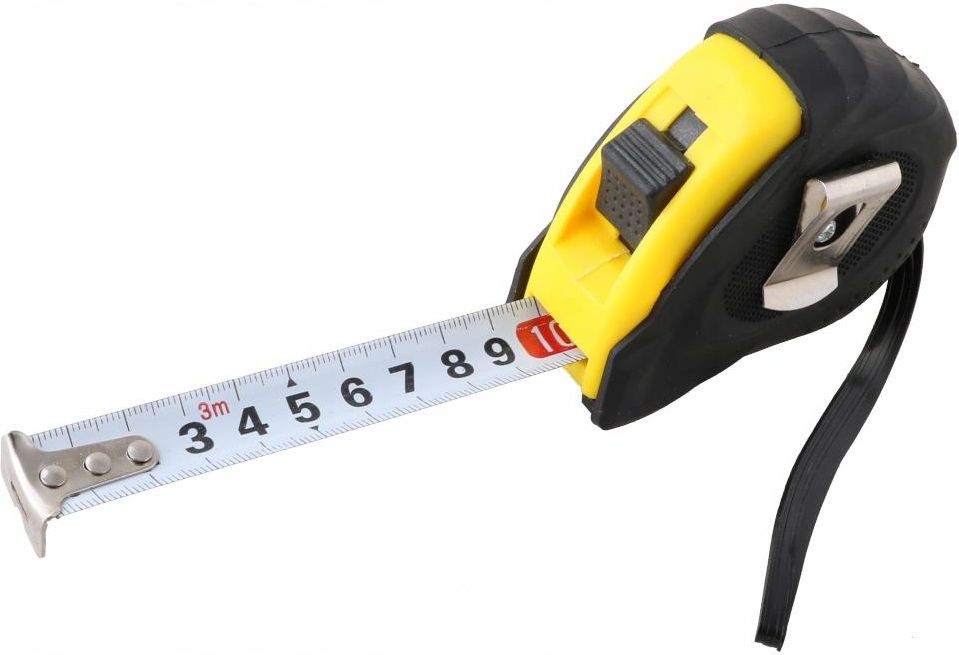 Taśma miernicza 3 m Cechy produktu: Obudowa wykonana z tworzywa Gumowa osłona dla wygody użytkowania Stalowy klips umożliwia zawieszenie taśmy za pasek Duże cyfry ułatwiają odczytanie wyniku Zamontowana gumowa zawieszka Dwie blokady wysuwania i zwijania taśmy Długość taśmy: 3 m Wymiary: 7,5 x 6,5 x 3,5 cm UWAGA! Taśma występuje w różnych kolorach. Wysyłam wyłącznie losowo