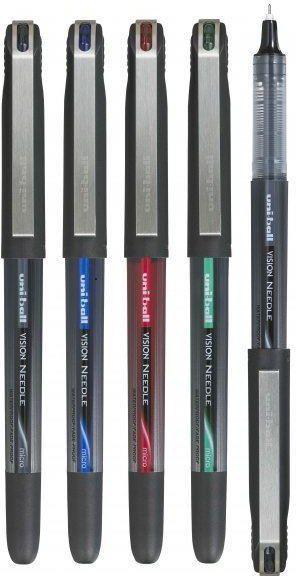 UNI CIENKOPIS UB-185 Idealny do kreślenia! Cienkopisem można nanosić poprawki między standardowo rozłożonymi wierszami tekstu. Pisze do ostatniej kropli tuszu zachowując taką samą grubość linii pisania i intensywność koloru. Tusz pigmentowy jest wodoodporny i odporny na blaknięcie. Cienkopis wyposażony jest w bezpieczną skuwkę – specjalny otwór, który umożliwia oddychanie w przypadku jej połknięcie. • cienkopis kulkowy z igłową końcówką i skuwką • materiał igły – stal nierdzewna • kulka z węglika wolframu o średnicy: 0,5 mm • grubość linii pisania ok.: 0,4 mm