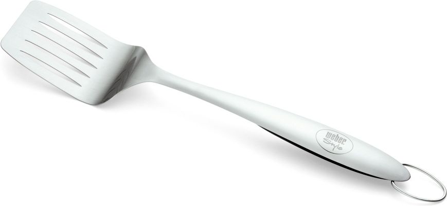 Opis produktu Idealne dopełnienie zestawu akcesoriów do grilla- elegancka i trwała łopatka. Łatwo ją odwiesić na uchwycie na akcesoria, gdyż zaopatrzona jest w zawieszkę. Przyda się do przekładania, nakładania i podawania mięs. Firmę Weber założył George Stephen w 1952 roku. Weber to amerykańska firma specjalizująca się w produkcji wysokiej jakości grilli węglowych, elektrycznych i gazowych oraz akcesoriów do grilli. Produkty Weber gwarantują najwyższe standardy bezpieczeństwa i trwałości, są cenione i popularne na całym świecie.