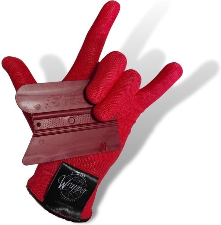 Wrapper Glove | Rękawica aplikatora Rękawica Wrapper Glove wykonana jest w technologii DrySlide dzięki, której można nią pracować bez konieczności zwilżania jej. Pozwala na dokładne "czucie" materiału z uwagi na wykonanie z cienkiego, a zarazem wytrzymałego materiału. Rękawica Wrapper Glove z powodzeniem może zastąpić rakle w wielu elementach - szczególnie w przetłoczeniach w których praca raklą byłaby utrudniona lub niemożliwa. Dostępne w rozmiarach: S, M, L. *Widoczna na zdjęciu rakla Wrapper Tool nie wchodzi w skład zestawu :)
